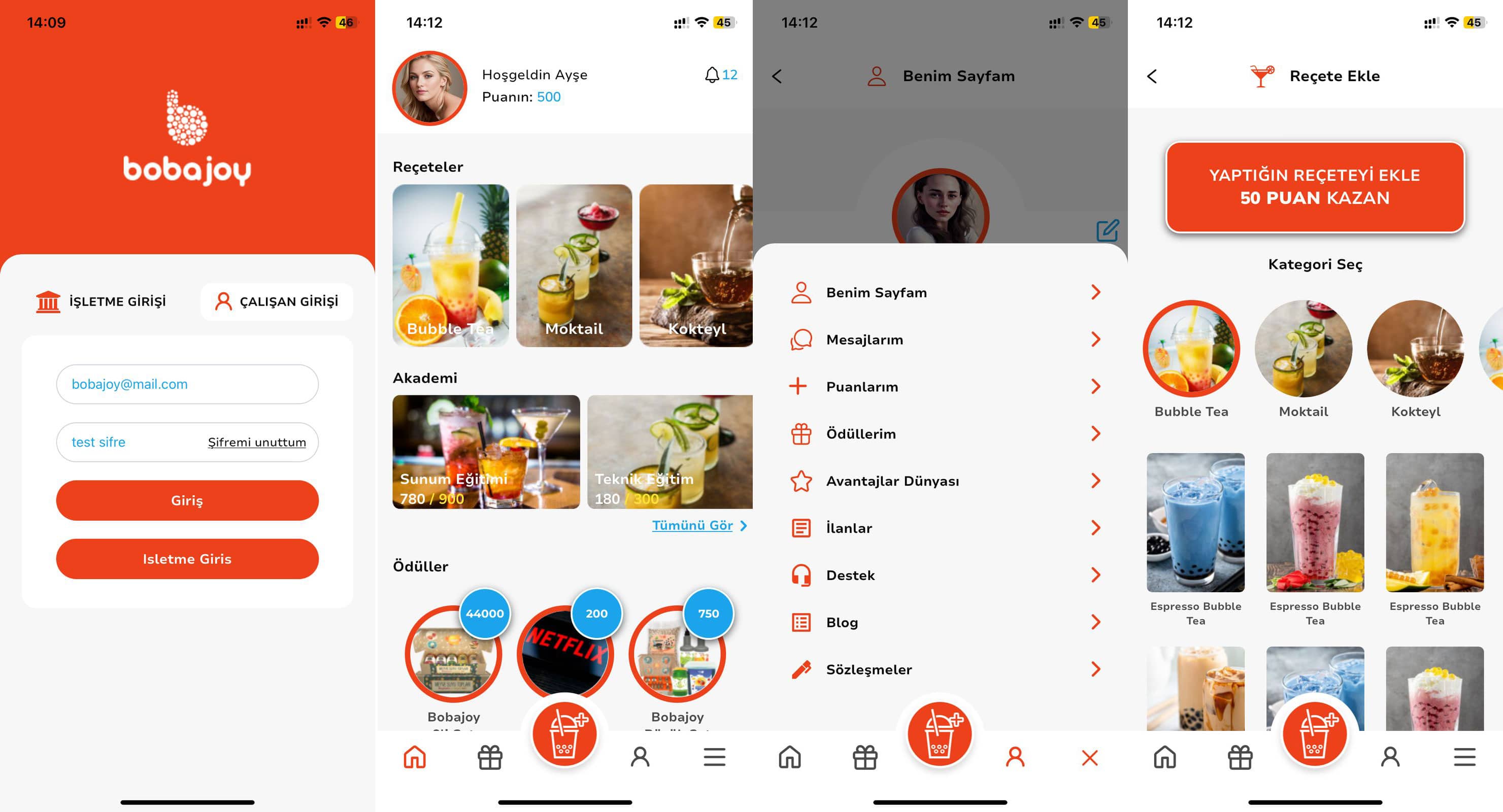 Bobajoy is inspired by the globally popular Taiwanese bubble tea trend, featuring fun and flavorful drinks with vegan, allergen-free popping boba. I developed an internal mobile application for staff and operations management. The app includes training modules, performance tracking, rewards, purchasing management, and digital recipes to standardize product preparation. Designed to improve operational efficiency, staff engagement, and in-store consistency.